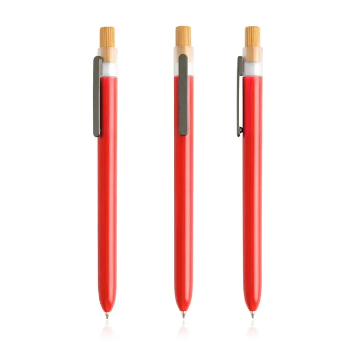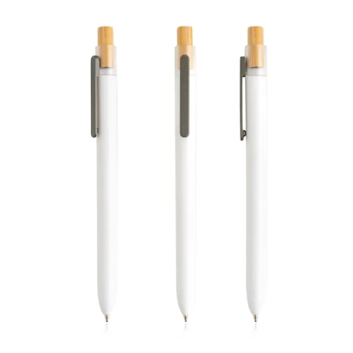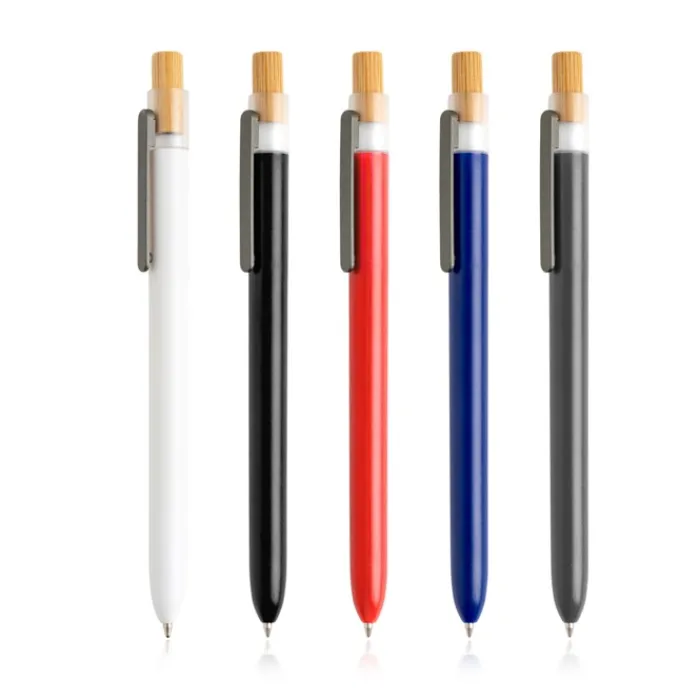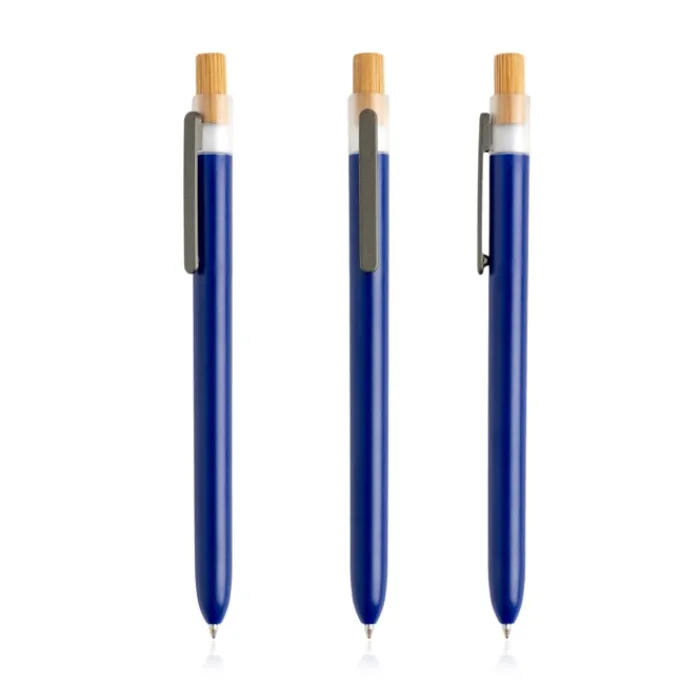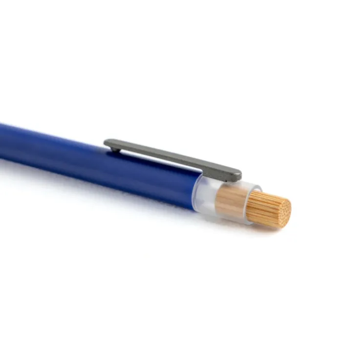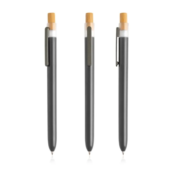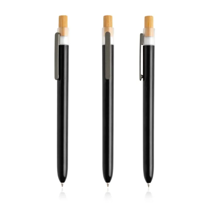 Penna a sfera in plastica riciclata dalle spiagge, dettaglio in bambù. Penna con corpo di colore uniforme e pulsante in bambù. Questa penna a scatto è dotata di scrittura nera. Vedi anche la versione con corpo traslucido 131598.