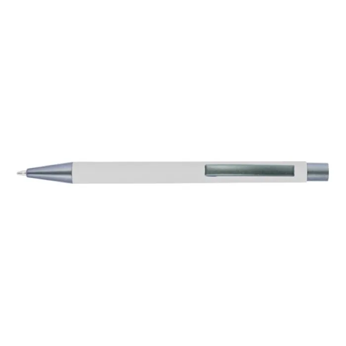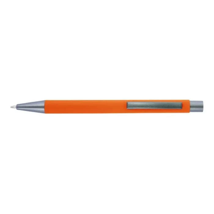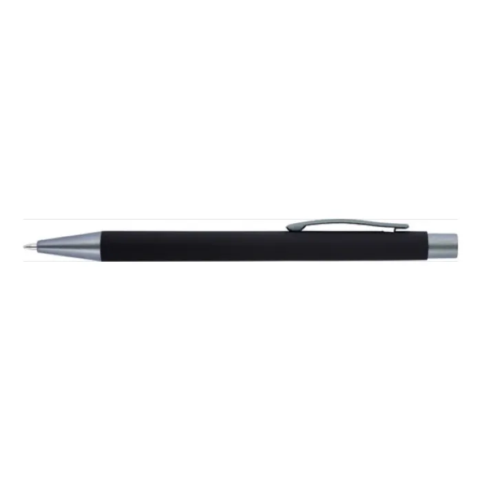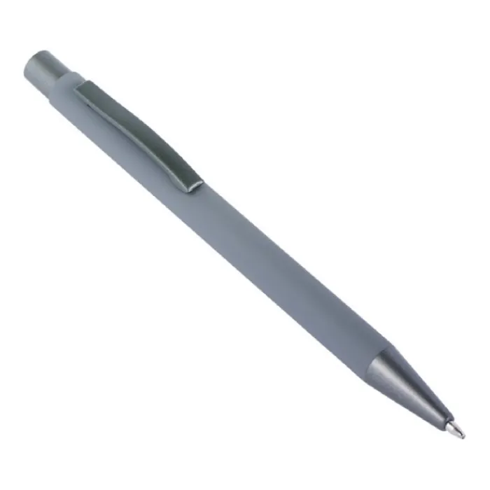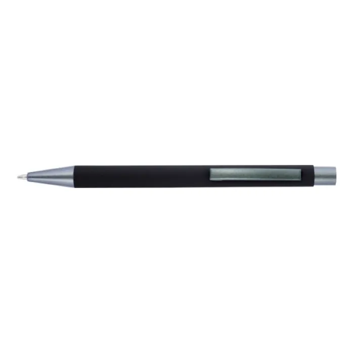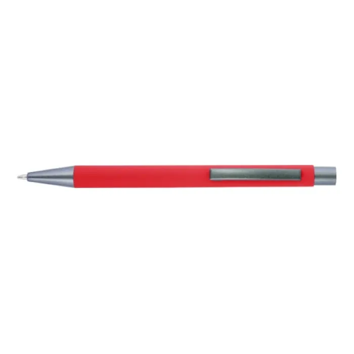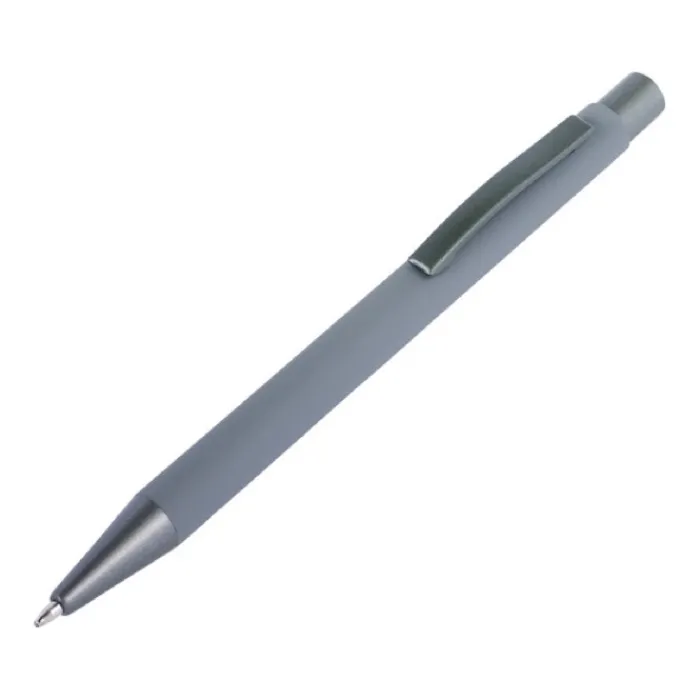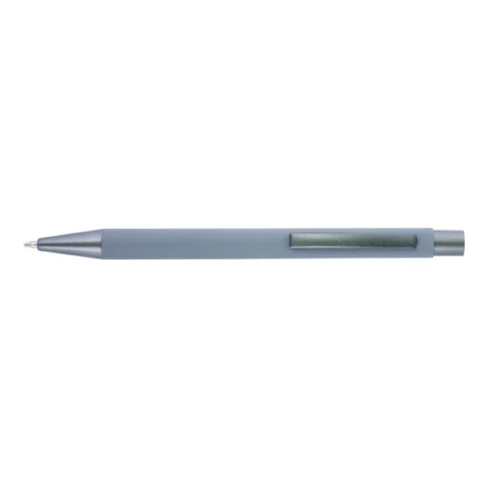 Penna a sfera in alluminio con finitura in gomma, punta, parte superiore e clip in tinta. L’incisione laser rivela la copertura a specchio della gomma. Inchiostro blu.