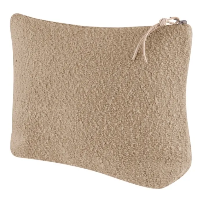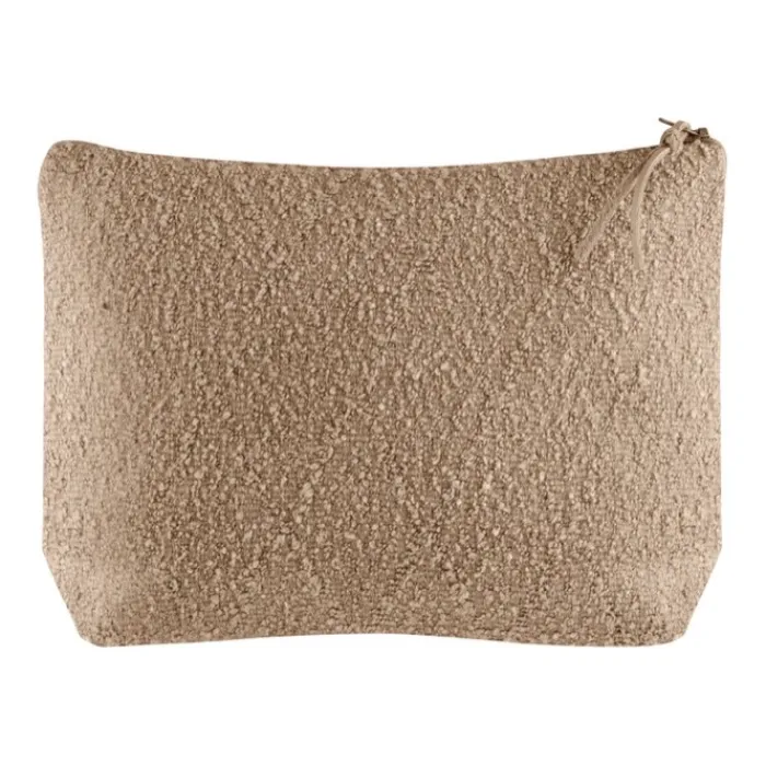 Pochette realizzata in tessuto di cotone da 375 gr/m² e poliestere con un tocco morbido e una finitura a trama riccia che ricorda la sabbia.