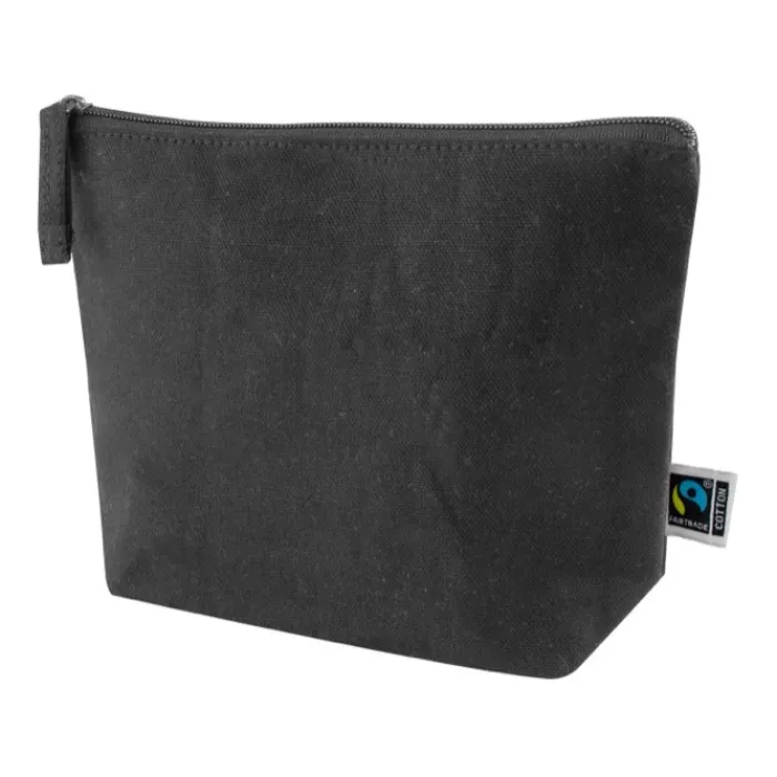 Pochette di colore nero, realizzata in 100% cotone da 280 gr/m². Articolo proveniente dal commercio equo e solidale.