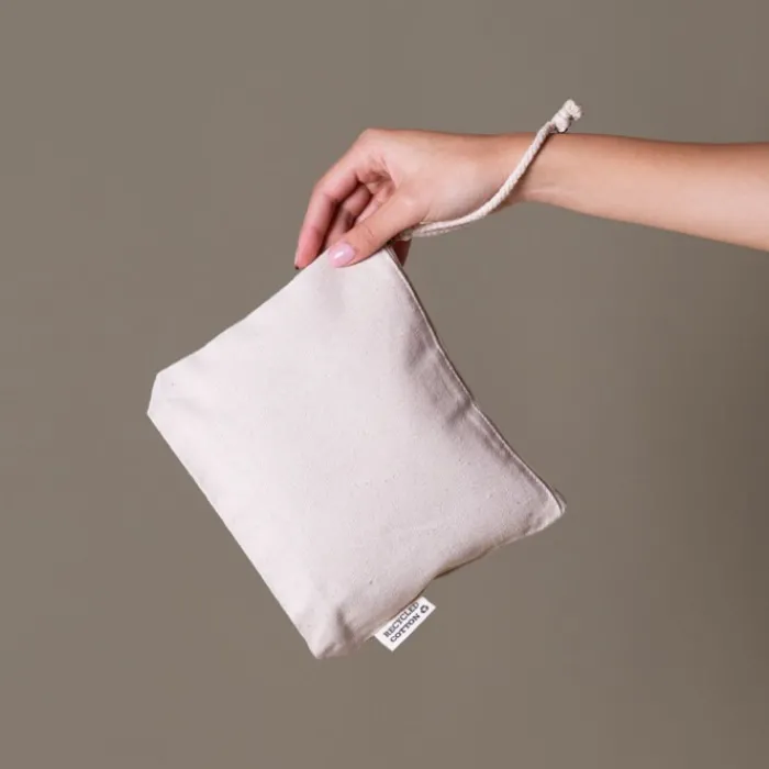 Pochette in cotone riciclato 320 g/m2 naturale con manico in corda.