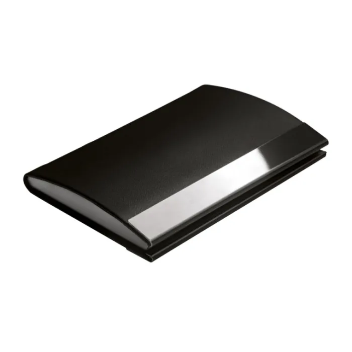 Porta biglietti da visita. Metallo lucido e similpelle. Fornito in scatola.