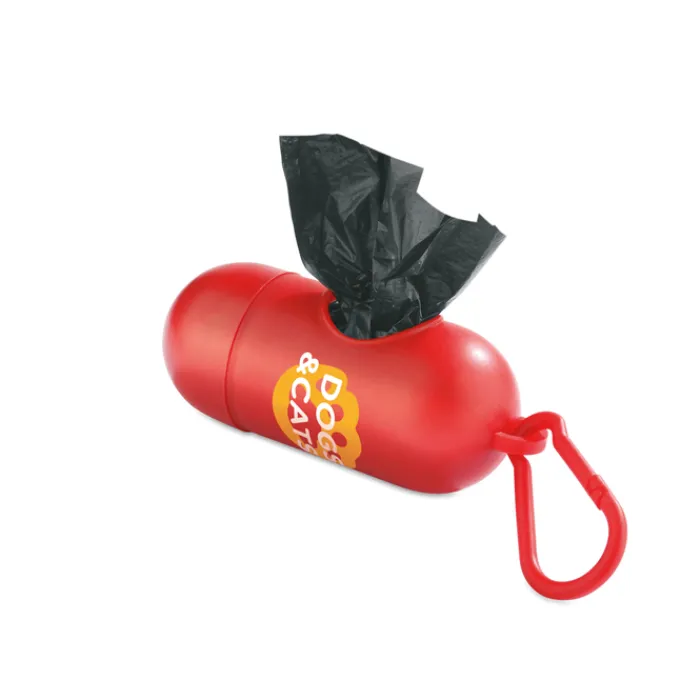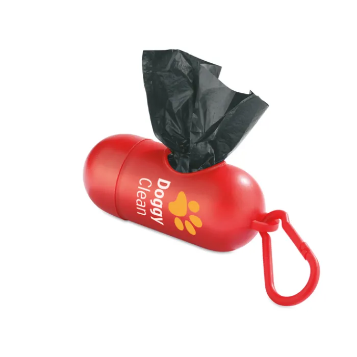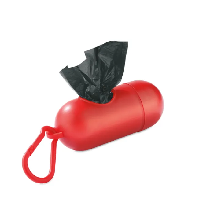 Porta sacchetti a forma cilindrica con moschettone per la rimozione all’aperto degli escrementi del proprio animale domestico. Contiene 10 sacchetti di plastica.