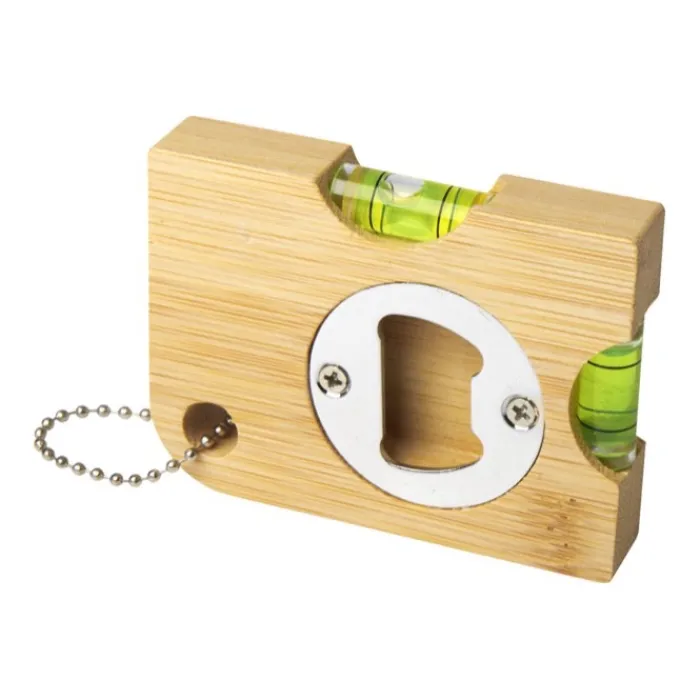 Portachiavi apribottiglie con livella a bolla d’aria realizzato in bambù certificato FSC. Questo utile strumento multifunzionale è il regalo perfetto per tutti gli appassionati di bricolage o per chi si diverte con le attività fai da te.