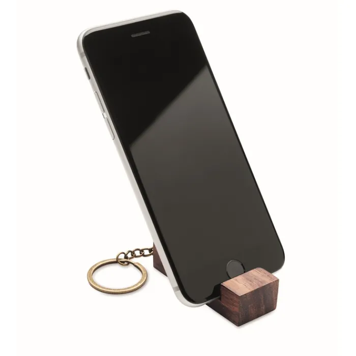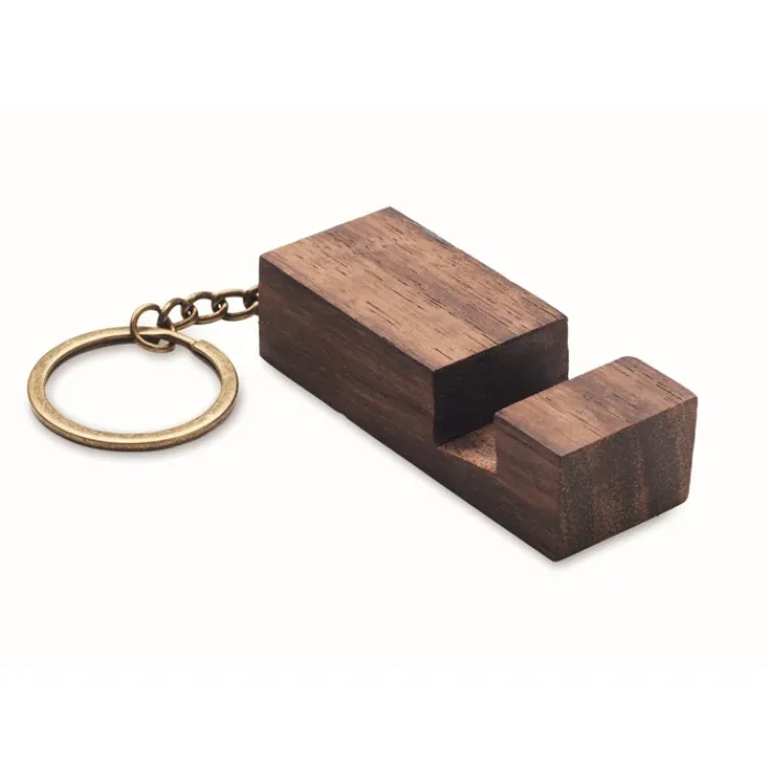 Portachiavi in legno di noce con supporto per telefono.