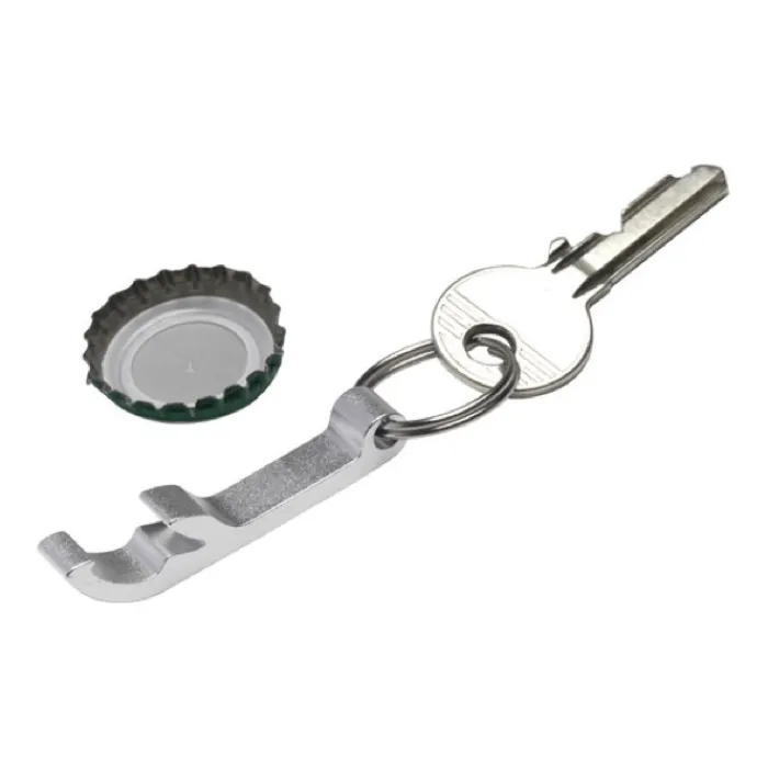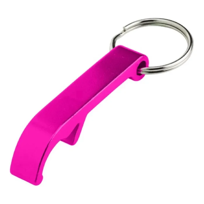 Portachiavi in alluminio con funzione di apribottiglie. Disponibile in differenti colori.