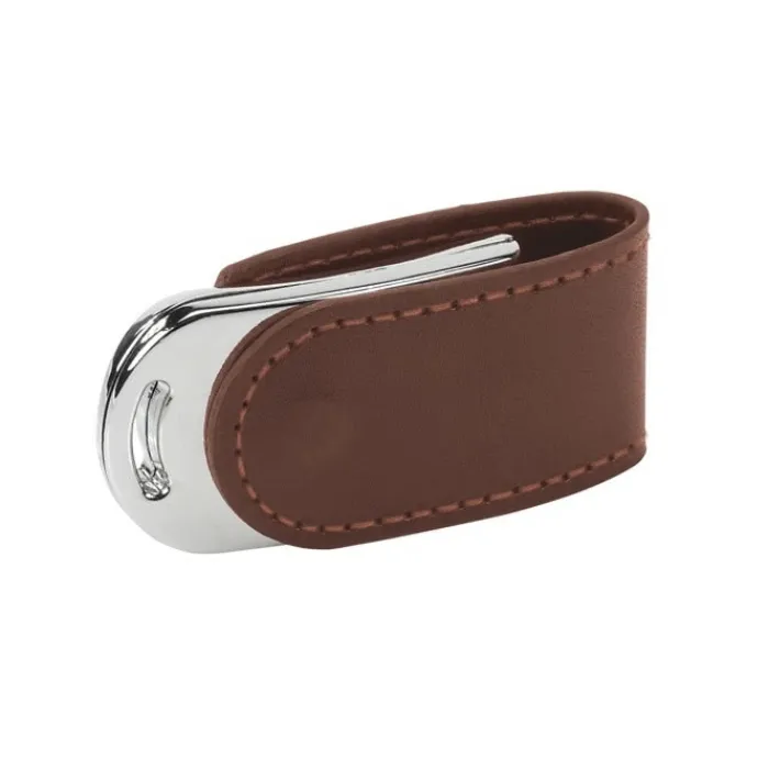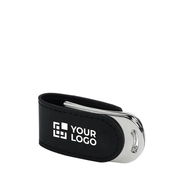 Elegante e raffinata memoria USB con tecnologia 3.0 in metallo e similpelle con chiusura magnetica. In pratica la parte in pelle avvolge la pendrive come una clip, che invece di ruotare si apre da un alto per poter infilare il chip nella porta USB.Questa velocissima chiavetta USB può essere personalizzata con il vostro logo o nome dell’azienda, attraverso una stampa a colori, un’incisione laser, oppure con una innovativa stampa in bassorilievo. È disponibile in 4 capacità di memoria: 8 GB, 16 GB, 32 GB e 64GB.