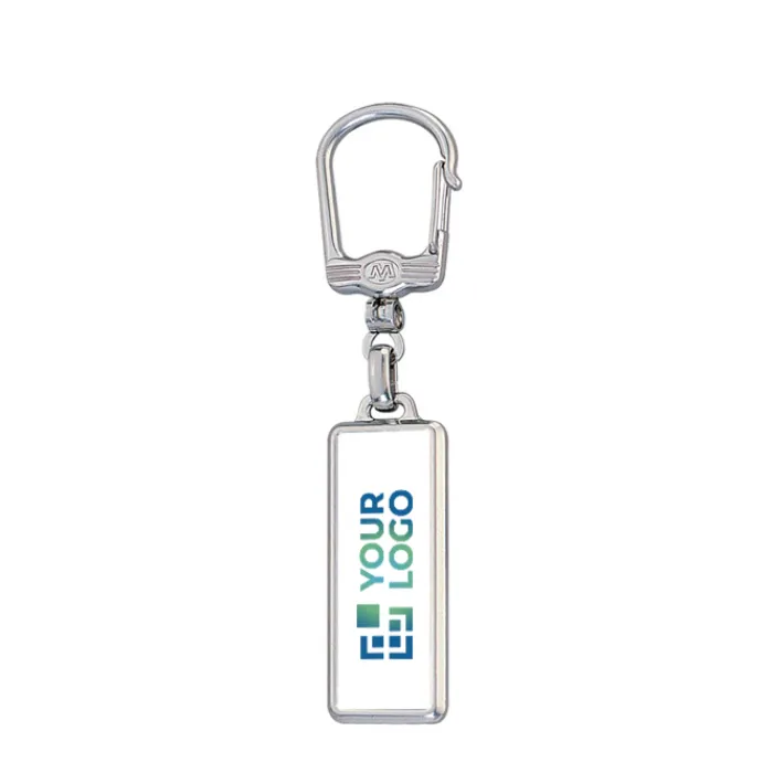 Portachiavi rettangolare in metallo color argento opaco, con moschettone.