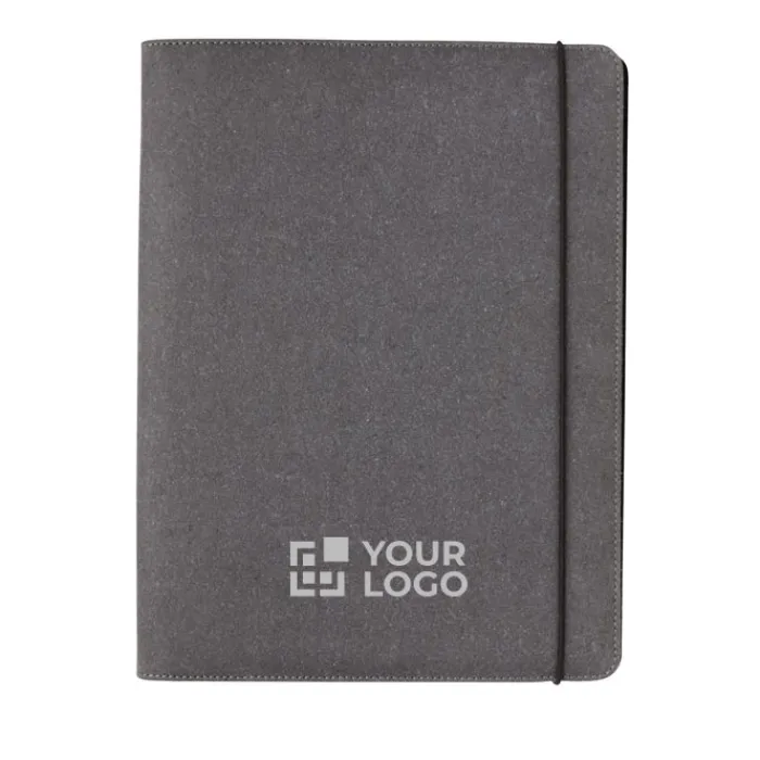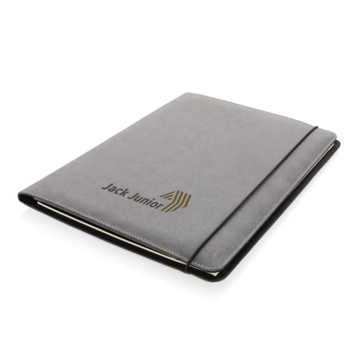 Regala un tributo alla sostenibilità e allo stile con questo portafoglio A4 in pelle riciclata. All’interno, ospita un blocco note di carta riciclata con 20 pagine rigate da 64 g/m², offrendo ampio spazio per le tue annotazioni. La disposizione interna è curata nei dettagli: un ampio taschino, tre scomparti per cellulare e quattro fessure per biglietti da visita, per mantenere tutto organizzato con eleganza. Presentato in una confezione regalo che aggiunge un tocco di raffinatezza fin dal primo sguardo. Inoltre, questo portafoglio con elastico di chiusura è personalizzabile con il tuo logo su entrambe le facce.