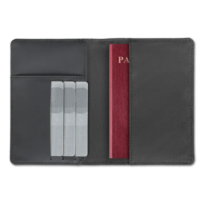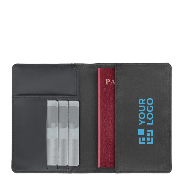 Porta passaporto RFID in poliestere tono su tono.