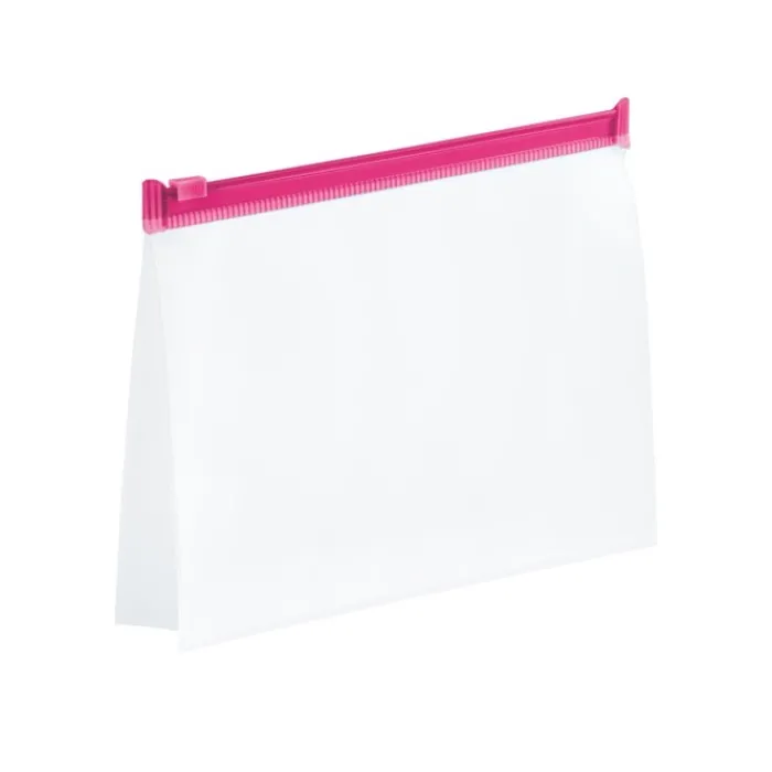Bustina ermetica in EVA con cerniera. Adatta per riporre i flaconcini di liquidi consentiti quando si viaggia in aereo.