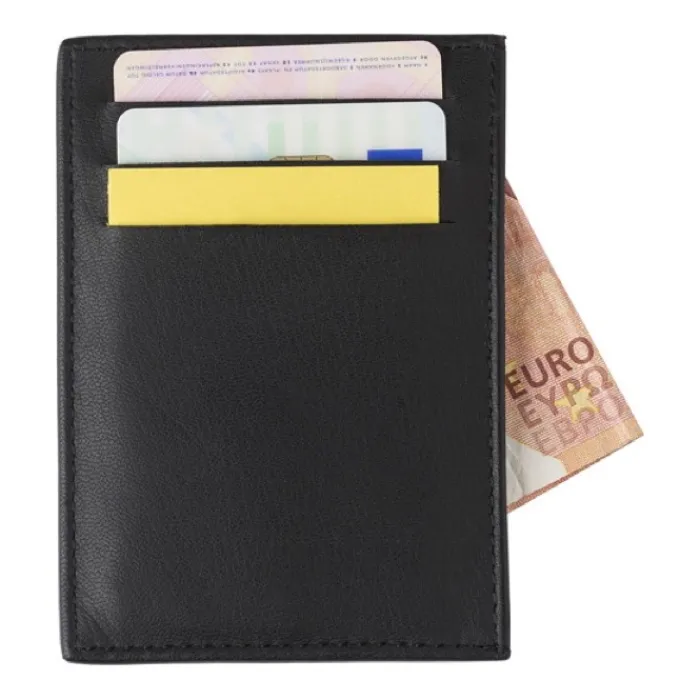 Porta carte di credito RFID, diversi vani interni, progettato per bloccare i lettori RFID dalle scansioni di dati bancari (anti-skimming), in pelle.
