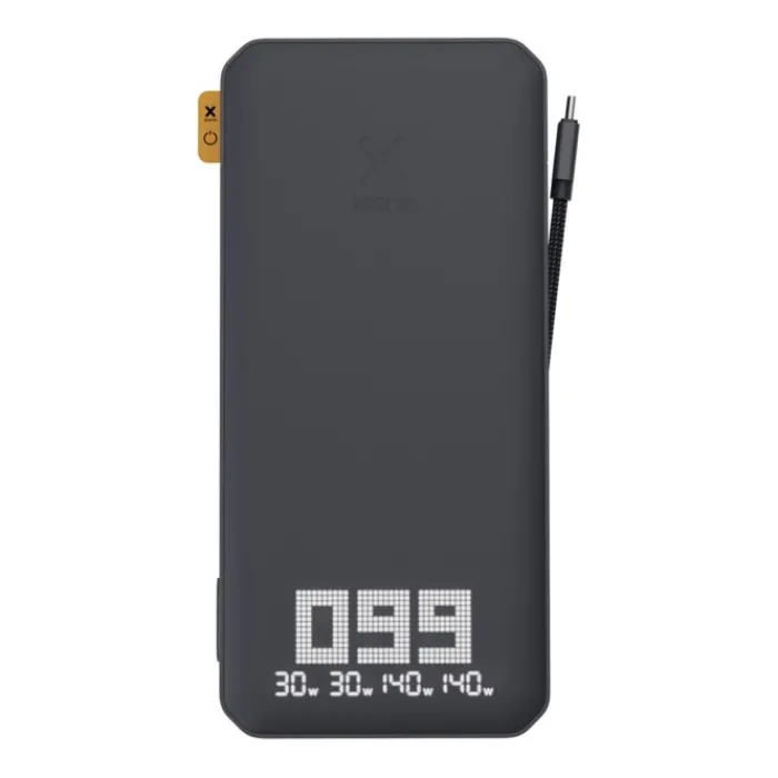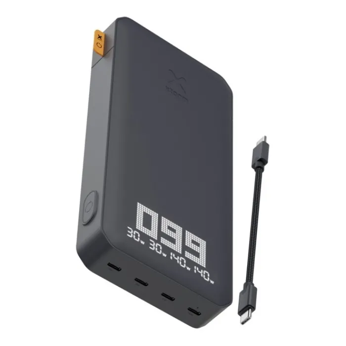 Powerbank dall’elevata capacità di 27.000 mAh, che può ricaricare facilmente e rapidamente il tuo portatile, MacBook, tablet, smartphone o e-reader con USB-C. Grazie a una potenza totale combinata di 200W e un’uscita singola USB-C da 140W, questo power bank è il più potente. Potrai caricare i dispositivi in qualsiasi momento, sempre e ovunque con il cavetto USB-C PD da 240W integrato. Adatto agli aerei. Può essere ricaricato completamente in meno di 1,5 ore. Uscita: 2 USB-C 3.1 da 140W di potenza, 2 USB-C da 30W di potenza. Ingresso: USB-C con 140W di potenza erogata. Viene consegnato con un manuale d’uso. Realizzato con plastica ABS riciclata e PC riciclato.
