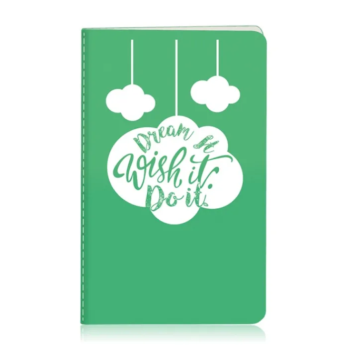 Quadernino formato A6 con copertina in cartone e dorso con cucitura bianca visibile. Contiene 40 fogli neutri (80 pagine) di carta FSC da 70 g/m². Facile da trasportare, grazie alla sua leggerezza, può essere portato con te in ogni momento e anche come regalo per un bambino.