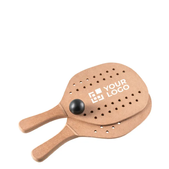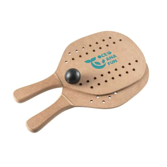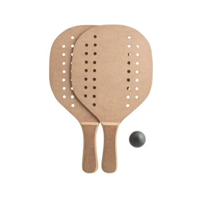 Racchettoni da spiaggia in MDF con pallina inclusa. Fornite in un sacchetto di cotone a rete.