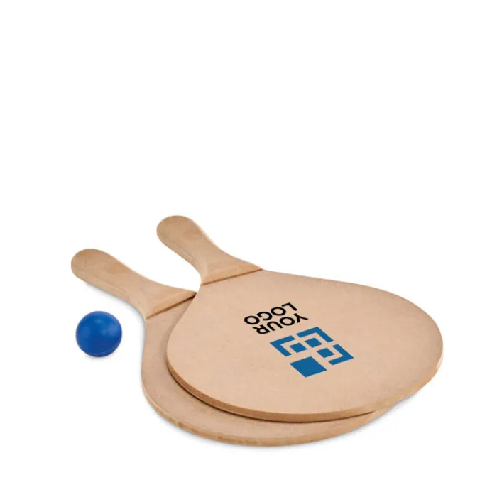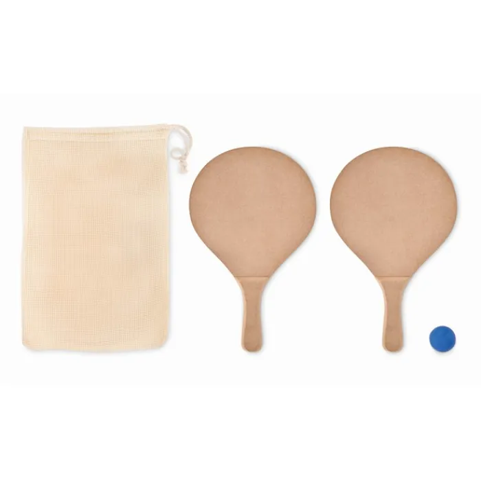Set da beach tennis composto da 2 racchettoni in MDF e 1 pallina morbida. Contenuto in un sacchetti di cotone a rete. Il prezzo indicato nel sito si riferisce alla personalizzazione di un solo racchettone. Se desideri personalizzare entrambi, contatta l’assistenza clienti.