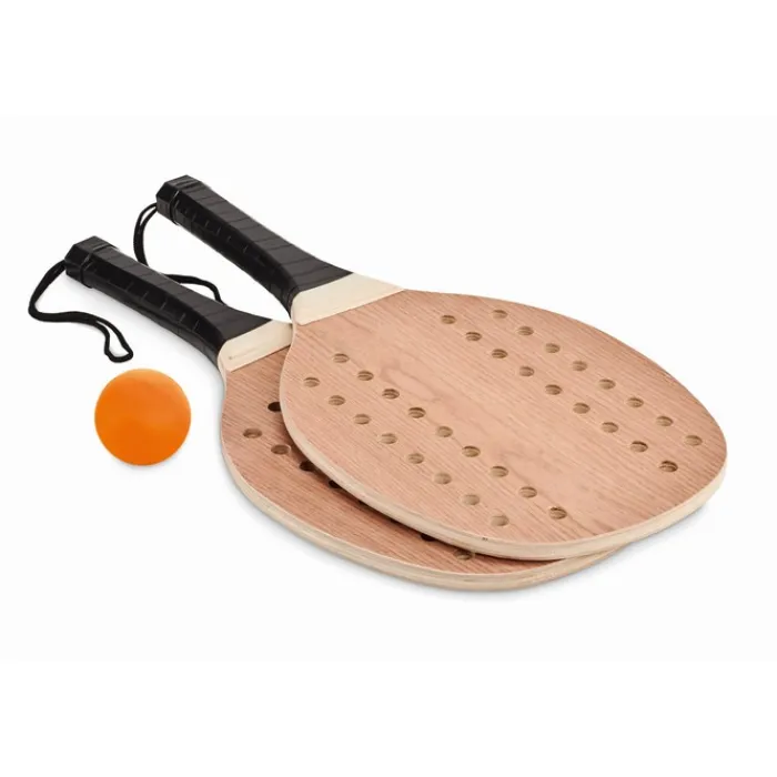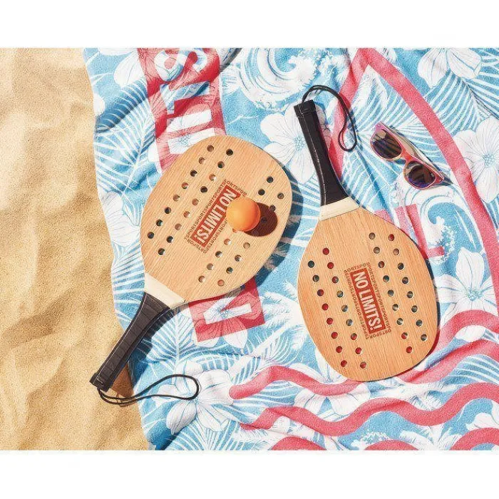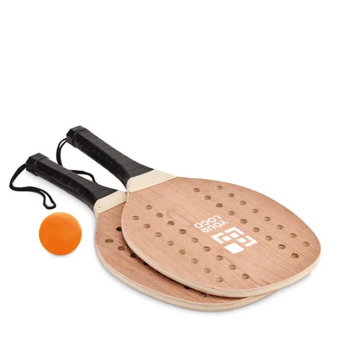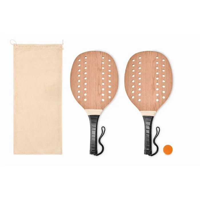 Set da beach tennis composto da 2 racchettoni in palissandro con impugnatura nastrata in PU e 1 pallina morbida. Presentato in un sacchetto di cotone. Il prezzo indicato nel sito si riferisce alla personalizzazione di un solo racchettone. Se desideri personalizzare entrambi, contatta l’assistenza clienti.