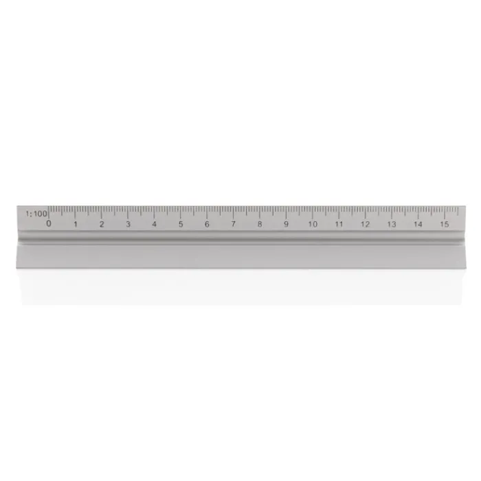 Scalimetro in alluminio lungo 15 cm con 5 diverse scale: 1:20, 1:25, 1:50, 1:75 e 1:100 . Perfetto da portare in tasca.