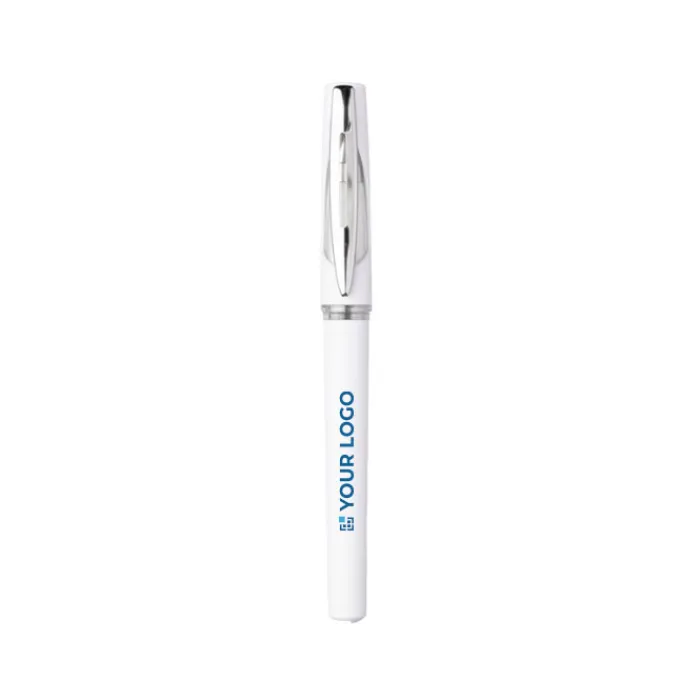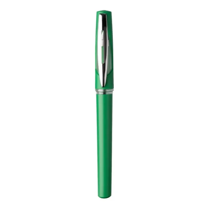 Penna roller in ABS con clip in metallo. Cappuccio con finestrina trasparente. Inchiostro gel nero con una lunghezza di scrittura di 400 m.