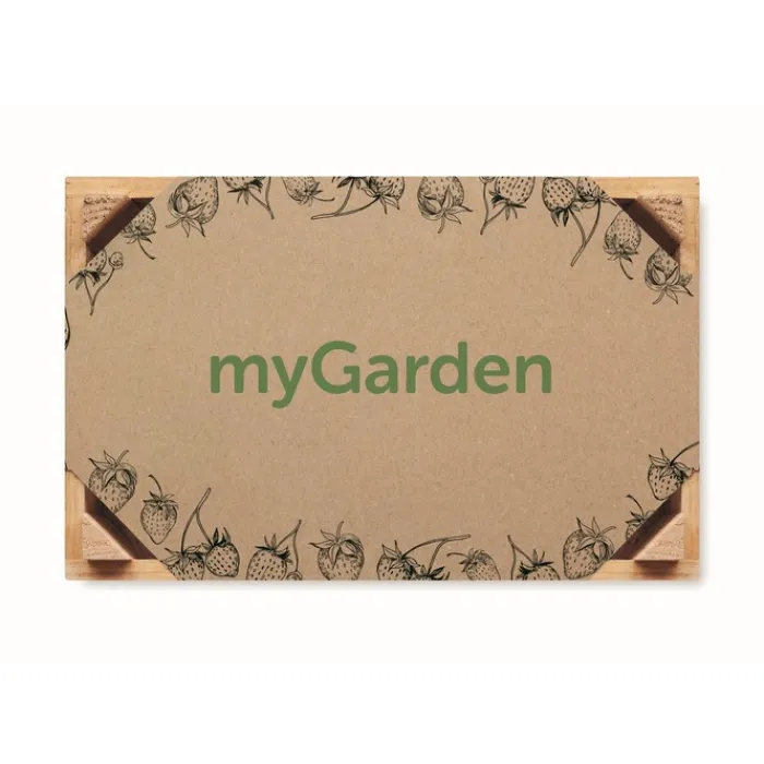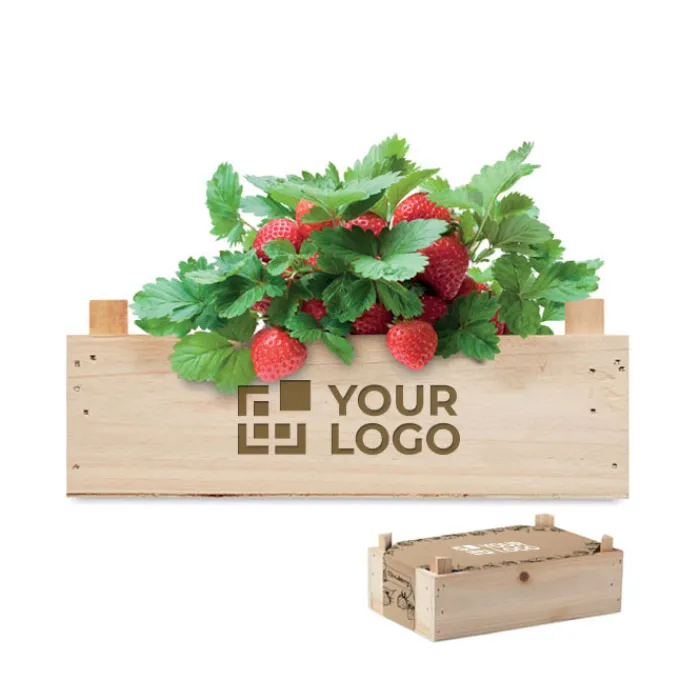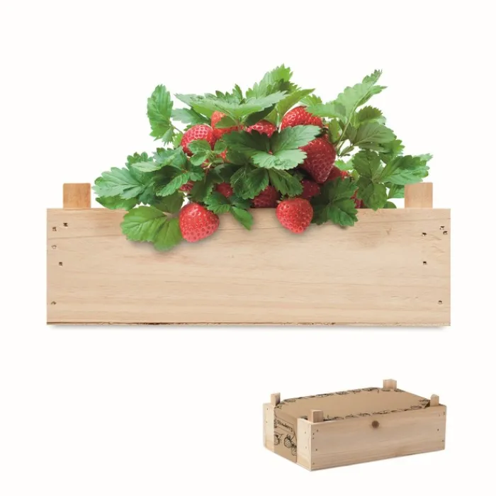 Stai cercando un regalo originale che trasmetta un messaggio chiaro sulla tua azienda? Questo kit di coltivazione di fragole è tutto ciò di cui hai bisogno. Presentato in una scatola di legno che funge da recinto per il mini orto di fragole, questo prodotto include anche i semi e la terra da giardino pronta per essere concimata. Si tratta di un regalo fabbricato nell’UE. Aggiungi il tuo logo alla scatola di legno e combina branding con sostenibilità e un tocco di colore a qualsiasi ufficio o casa. Disponibile con trasporto rapido.