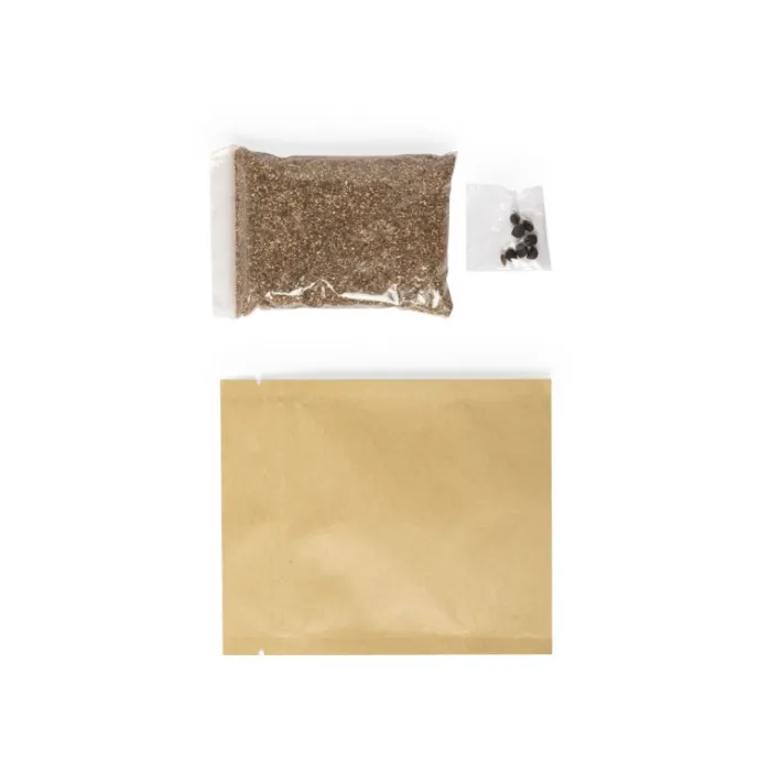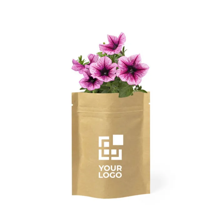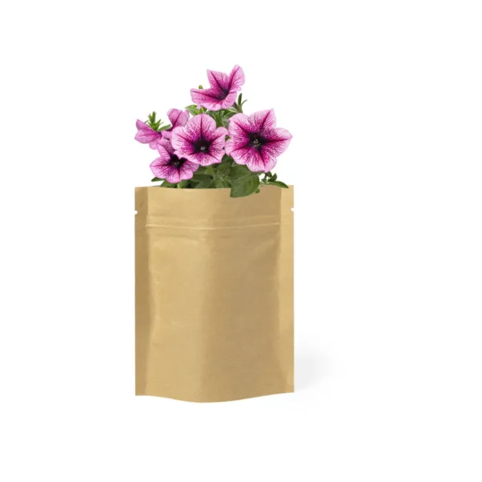 Busta di carta con 5-8 semi di petunia e substrato di coltivazione.
