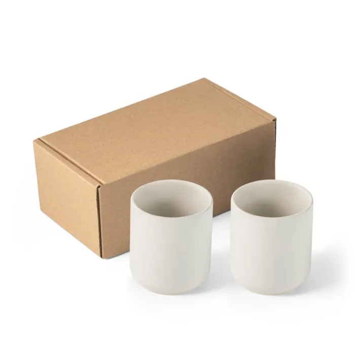Set di due tazze in ceramica con finitura opaca. Capacità fino a 280 ml. Fornite in una confezione regalo di carta kraft. Se desideri personalizzare entrambe le tazzine, si prega di contattare l’assistenza clienti, in quanto il prezzo nella web si riferisce alla personalizzazione di una sola.