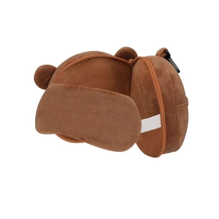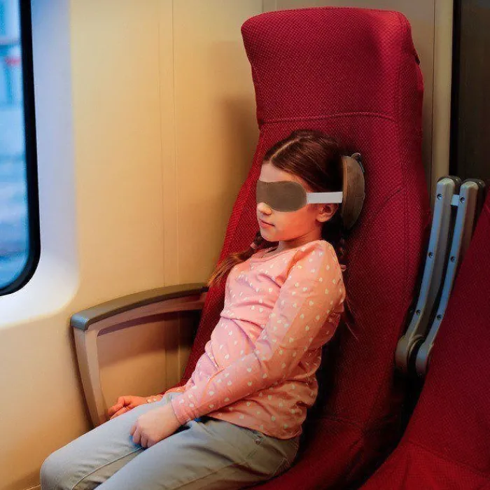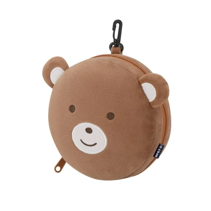 Cuscino per bambini con mascherina, ideale per i viaggi, realizzato in morbido materiale RPET. Include una mascherina interna adattabile tramite due elastici per garantire maggiore comfort e riposo durante il viaggio. Dotato di un morbido poggiatesta pieghevole con chiusura a cerniera, che facilita lo stoccaggio. Inoltre, presenta una pratica tasca esterna e un moschettone di plastica nero per un trasporto facile. Questo accessorio combina funzionalità, design compatto e un tocco divertente, perfetto per accompagnare i bambini nei loro viaggi. Il materiale RPET è realizzato con plastica riciclata, promuovendo il riutilizzo dei rifiuti di plastica e contribuendo alla sostenibilità del pianeta.