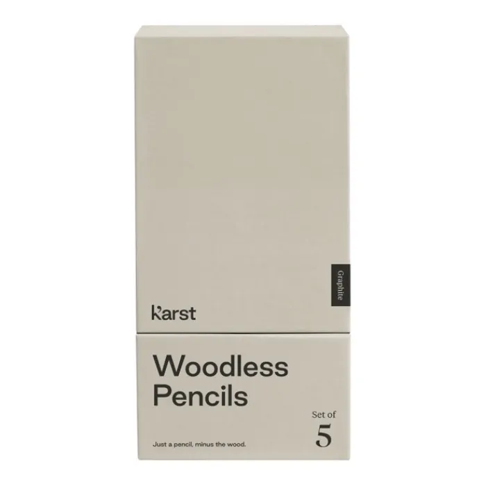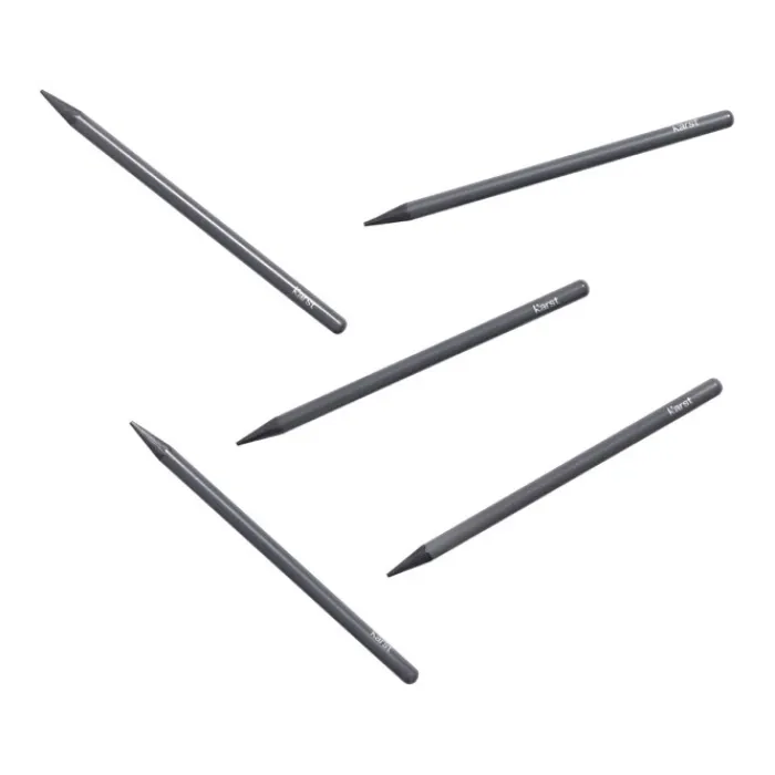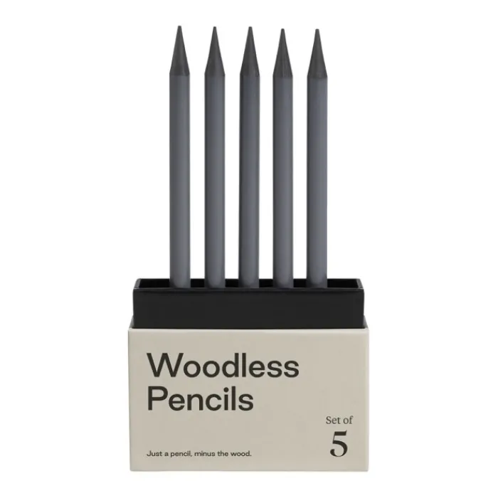 Set di 5 matite in grafite che offrono una durata 5 volte superiore. Il fusto privo di legno può essere temperato per scrivere linee nitide, oppure spuntato per realizzare tratti più espressivi o sfumature leggere. La struttura priva di legno consente un utilizzo versatile senza la produzione di scarti. La solidità di queste matite offre una sensazione piacevole quando si tengono in mano per scrivere o per disegnare a mano libera.