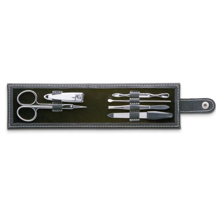 Set manicure 6 pezzi in acciaio inossidabile in custodia rettangolare in PU.