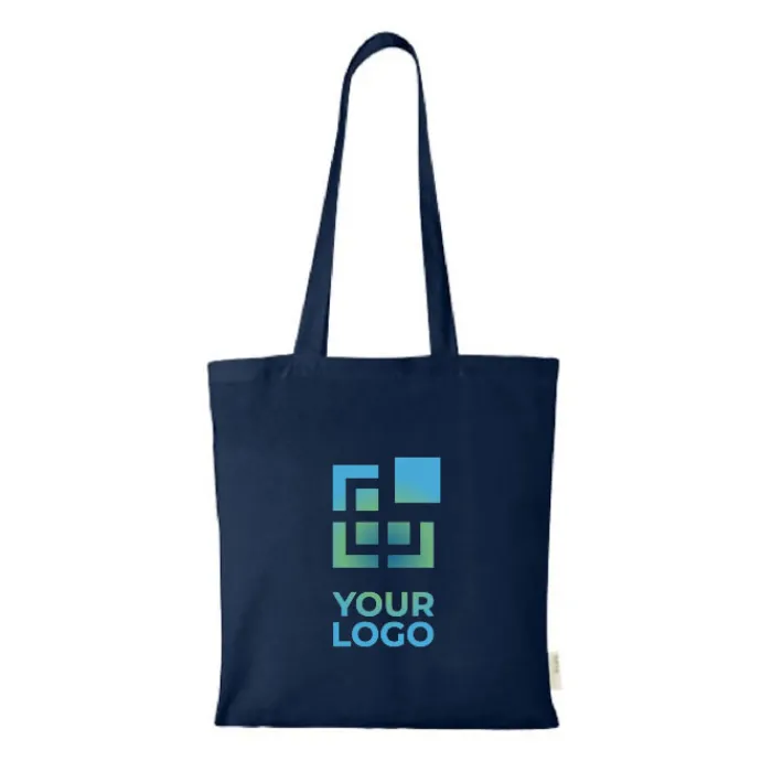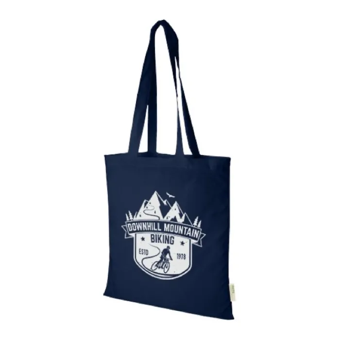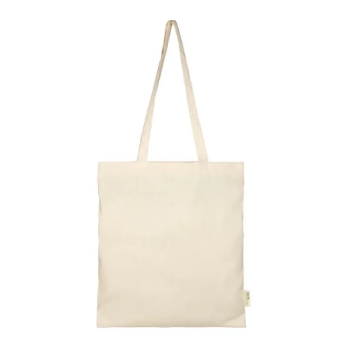 Tote bag in cotone da 140 g/m² certificato GOTS. Robusta, resistente e adatta per trasportare oggetti pesanti nell’ampio scomparto principale. I manici sono lunghi 32 cm per poterla portare comodamente a tracolla. Capacità 7l.