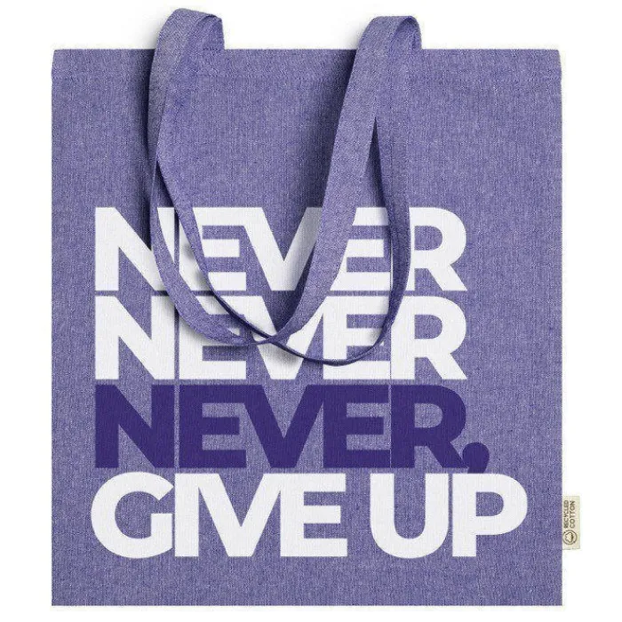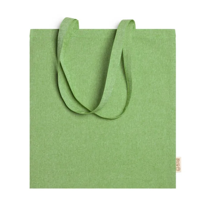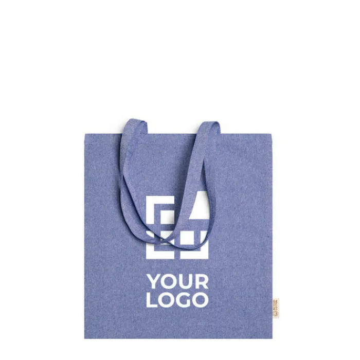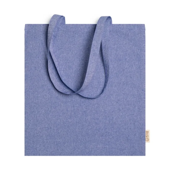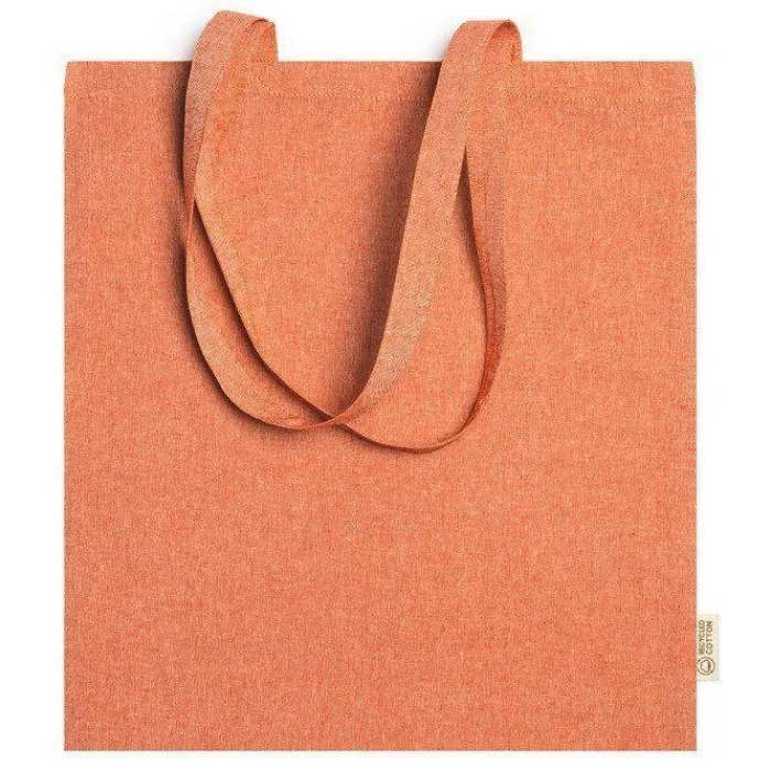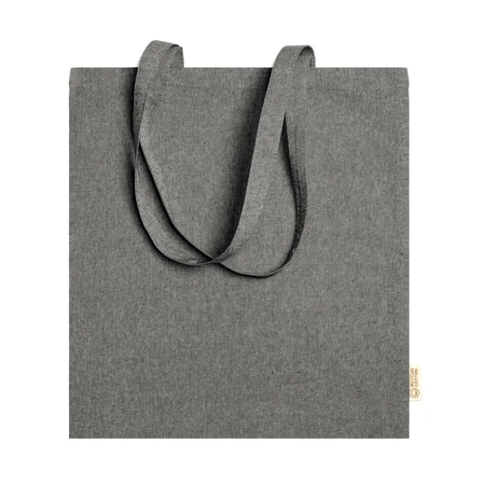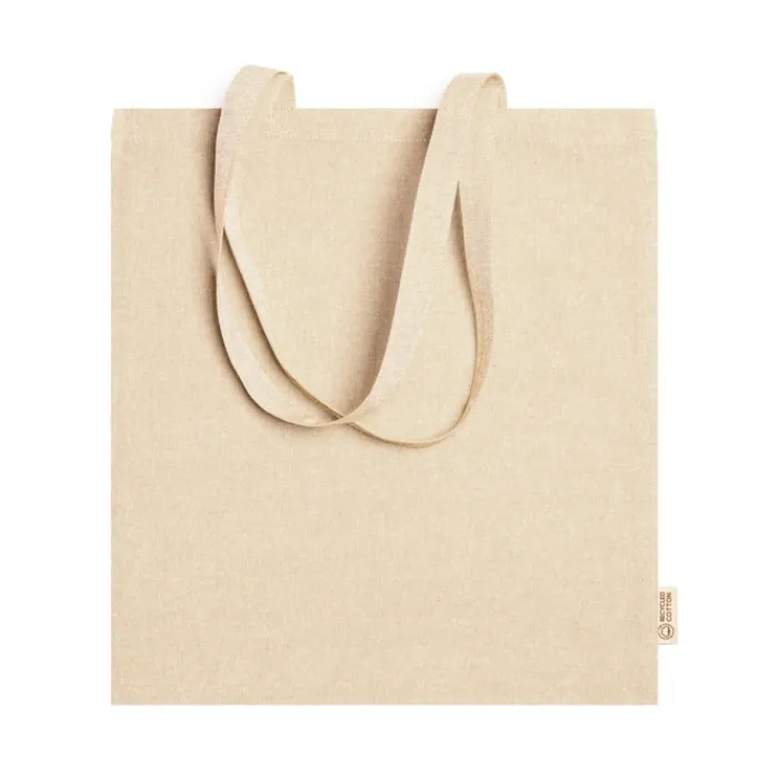 Shopper in 100% cotone riciclato da 120 g/m2 con finitura marmorizzata con manici lunghi 70 cm.