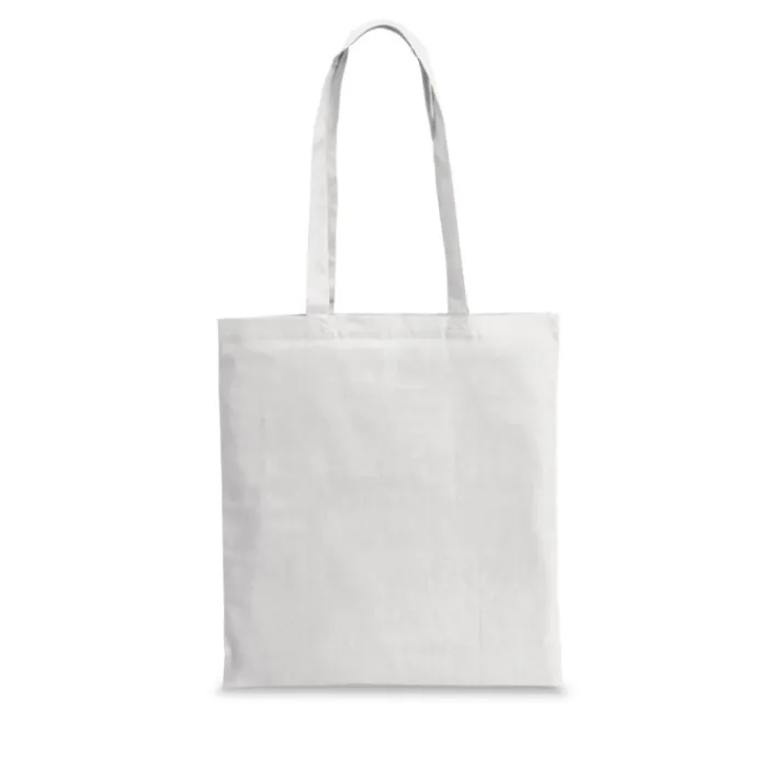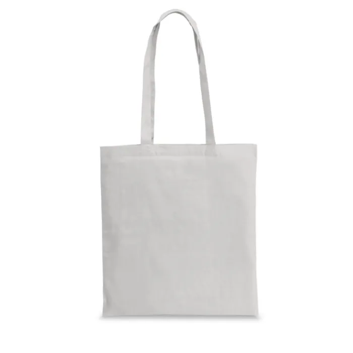 Borsa da 180 g/m² con manici lunghi da 65 cm, realizzata al 70% in cotone riciclato e al 30% in rPET.
