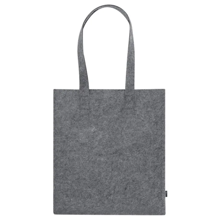 Shopper realizzata in feltro RPET riciclato, con maniglie lunghe rinforzate. Resistente fino a 6 kg. Include un distintivo RPET sull’etichetta esterna. Il materiale RPET è prodotto a partire da plastica riciclata, promuovendo il riutilizzo dei rifiuti plastici e contribuendo alla sostenibilità del pianeta.