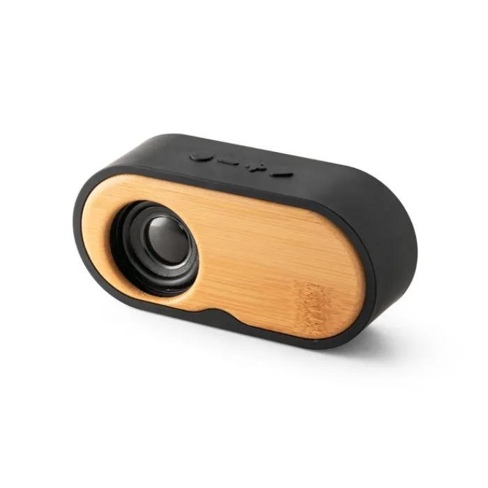 Altoparlante portatile realizzato in ABS riciclato e bambù. Con 3W di potenza, trasmissione Bluetooth 5.0 e funzione radio. Autonomia fino a 5 ore con batteria da 1200 mAh. Fornito in una confezione regalo di carta kraft.