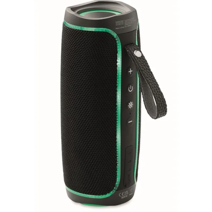 Speaker wireless 2x5W IPX4 resistente agli schizzi, dotato di luce colorata a LED e batteria da 1800 mAh.