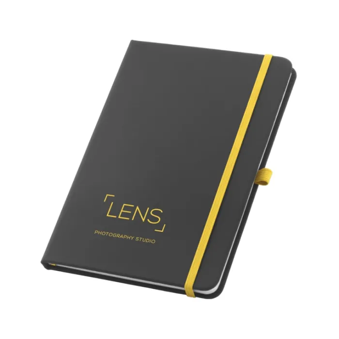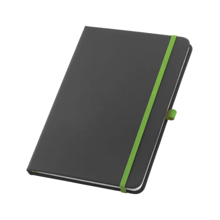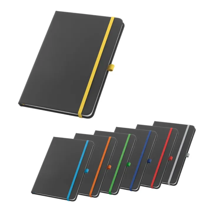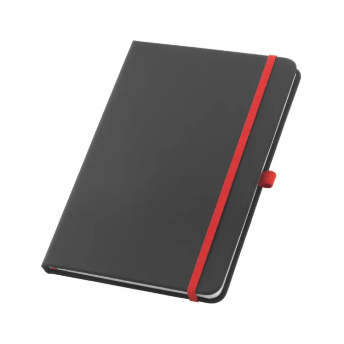 Block note. Similpelle. Copertina rigida. Con supporto per penna a sfera e 80 fogli a righe.