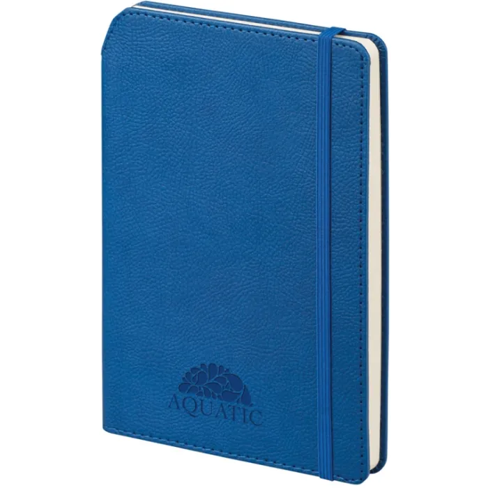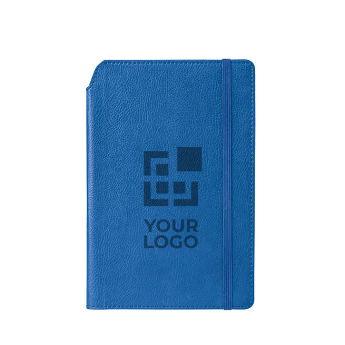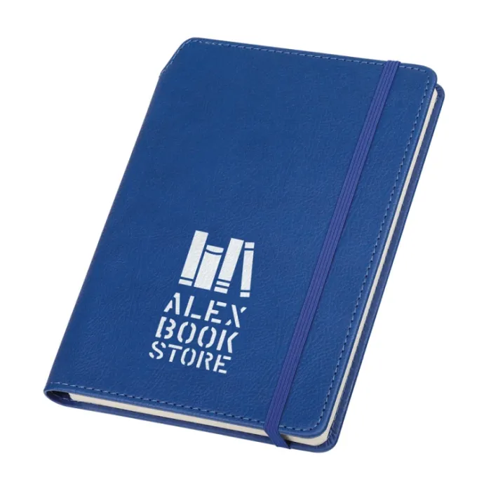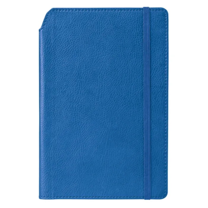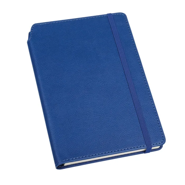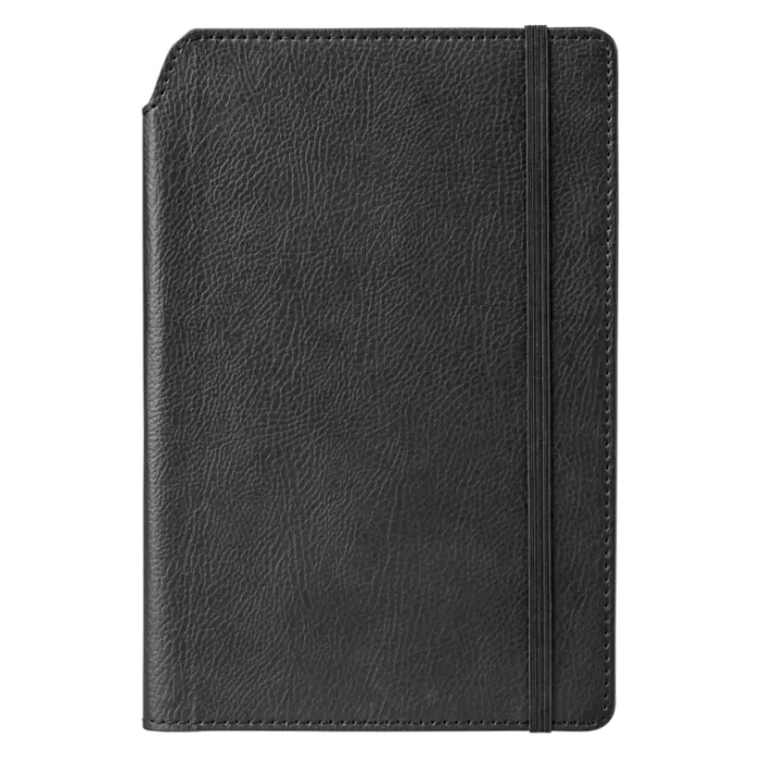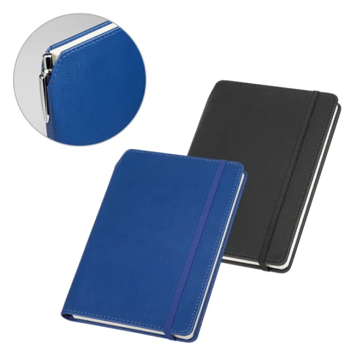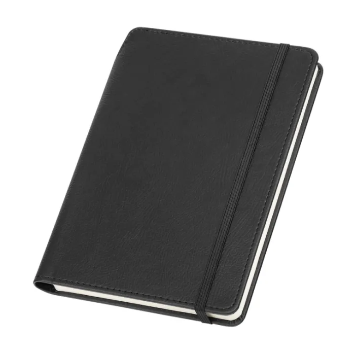 Taccuino A5 con elastico e uno spazio per penna a sfera sul dorso. Contiene 192 pagine a righe.