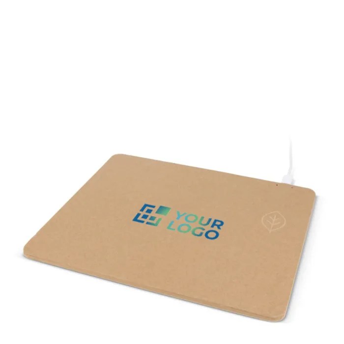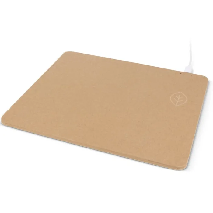 Mousepad ecologico realizzato con carta riciclata, che include una stazione di ricarica wireless. Navigate senza problemi e ricaricate i vostri dispositivi in modo sostenibile. Ingresso: DC 5V/2A. Consegnato con cavetto USB.