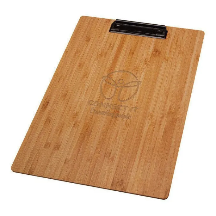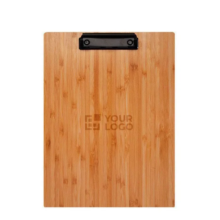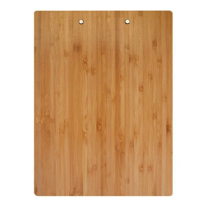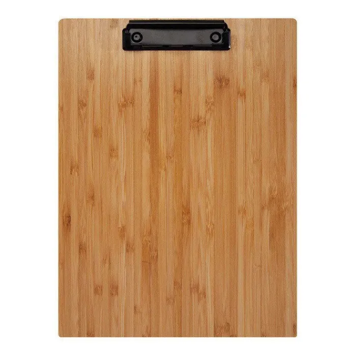Pratica tavoletta per fogli realizzata in bambù. La clip per mantenere fermo un foglio di carta è realizzata in ferro e plastica PP. Dimensione: 31,2 x 22,4 x 0,4 cm.