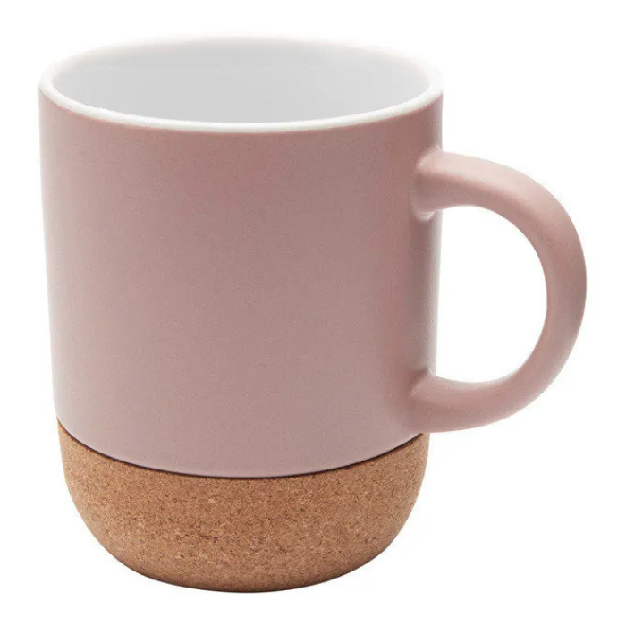Tazza in ceramica con fondo in sughero, esterno opaco e interno lucido. Lavare a mano con acqua tiepida e detergente delicato. Confezionata in scatola regalo di cartone riciclato. Capacità: 300 ml.