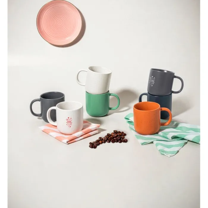 Tazza piccola in ceramica con finitura opaca ed effetto rustico all’esterno. Capacità fino a 90 ml. Fornita in una confezione regalo di carta kraft. La tazza è lavabile in lavastoviglie e può resistere ad almeno 125 cicli di lavaggio, con stampa inclusa, in conformità alla norma EN12875-1.