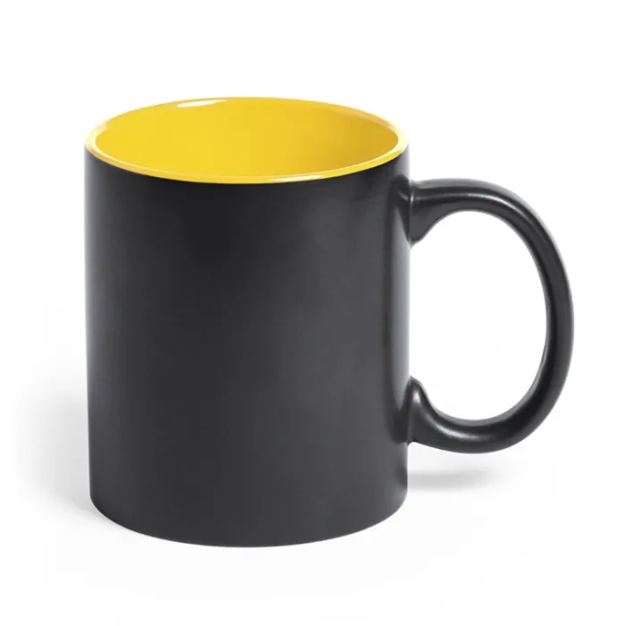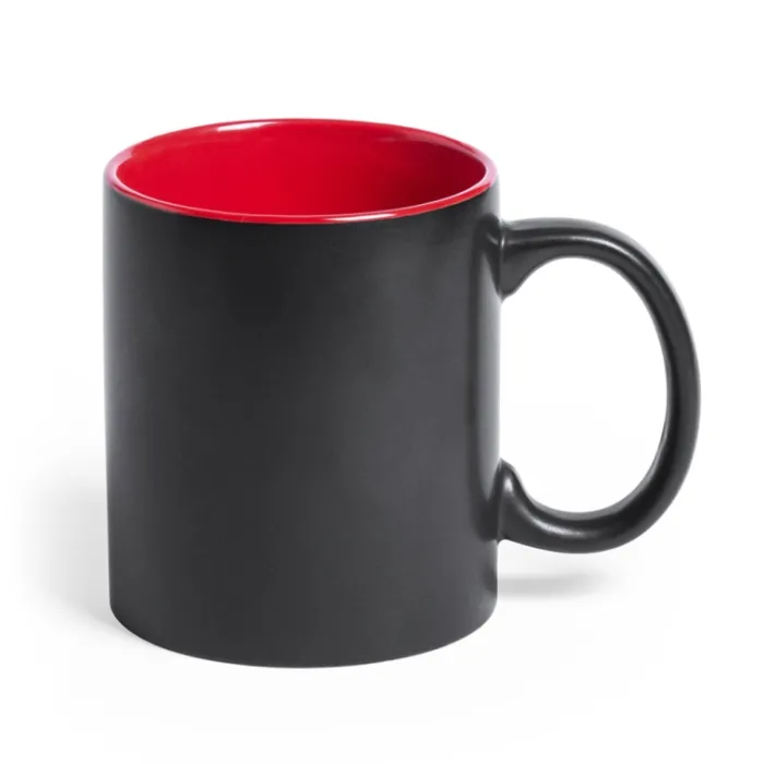 Tazza in ceramica di alta qualità da 350 ml. Esterno in nero ed interno colorato. Se decidete di personalizzarle con l’incisione laser, il logo sarà dello stesso colore dell’interno della tazza. Presentata in scatola individuale.