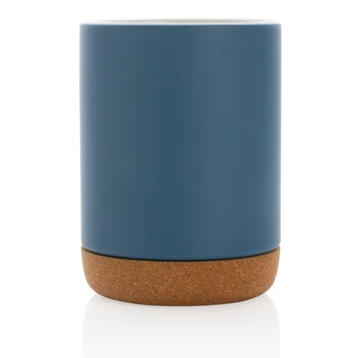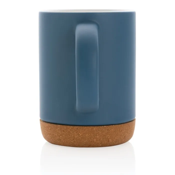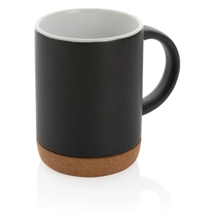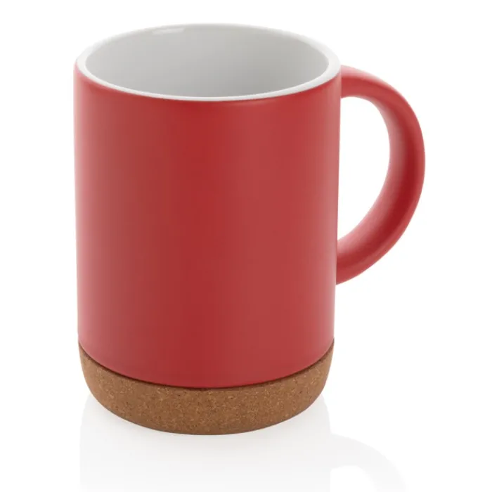 Tazza in ceramica con base in sughero, caratterizzata da una finitura liscia opaca della parete esterna e da una finitura lucida della parete interna. La base in sughero aggiunge un tocco naturale. Questa tazza starà bene su qualsiasi tavola. Non adatta al microonde. È consigliato lavarla a mano. Capacità 280 ml.