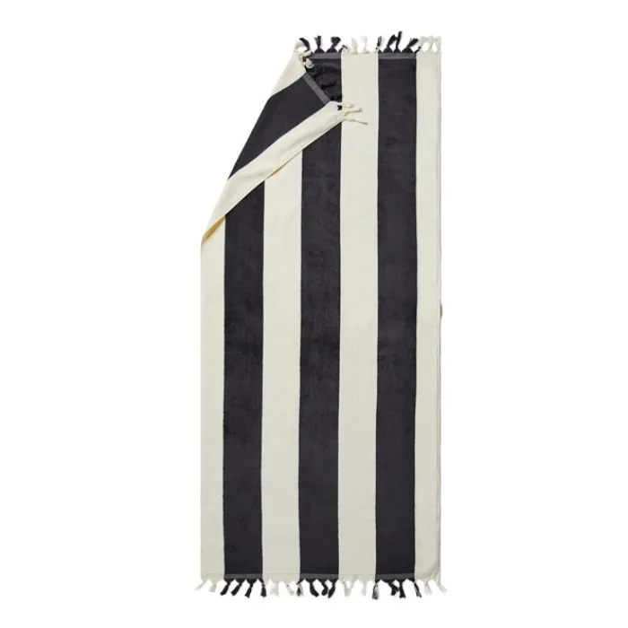 Lussuoso telo mare in cotone con nappine sui lati corti e trama a righe, adatto alle giornate al mare o in piscina. Realizzato in India con cotone 450 g/m² biologico al 100% .