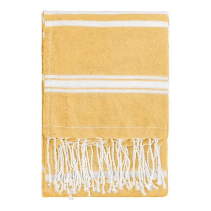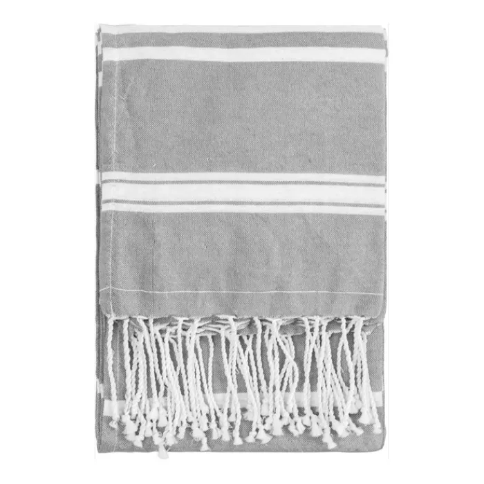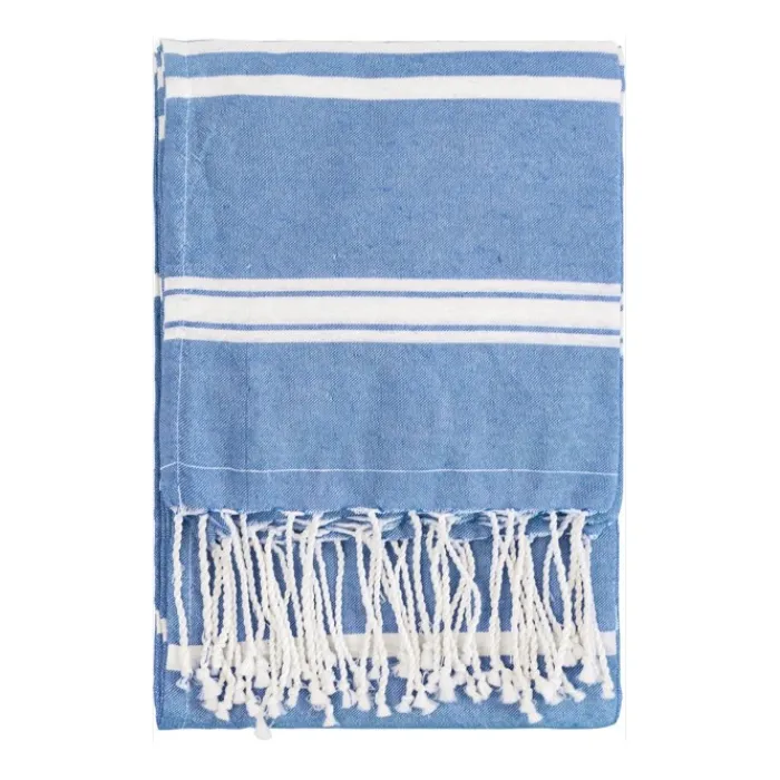 Questo pareo asciugamano, dal design semplice e accattivante con righe bianche, sarà il tuo compagno ideale per le giornate in spiaggia o in piscina. Realizzato in 80% cotone e 20% poliestere, presenta un tessuto tipo fouta a trama piatta con un peso di 170 g/m2, garantendo così un accessorio di qualità perfetto per valorizzare il tuo marchio. Disponibile in vari colori, misura 90 x 180 cm ed è personalizzabile con il tuo logo tramite diverse tecniche, anche con stampa a colori.