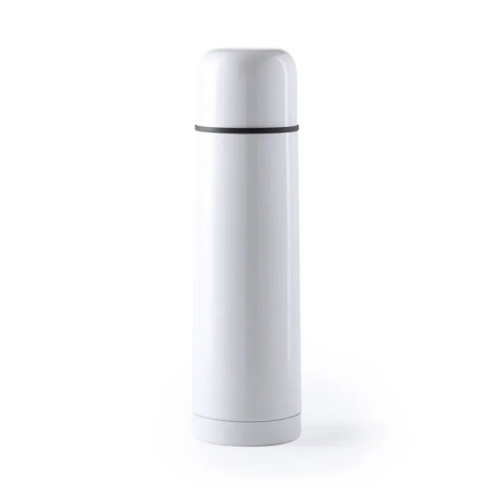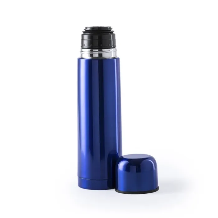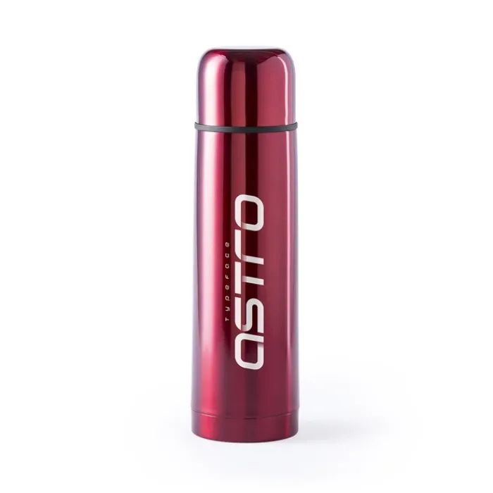 Thermos in acciaio inossidabile dai colori brillanti dotato di un tappo a vite di sicurezza utilizzabile per bere. Capacità 500 ml. Confezione Singola.