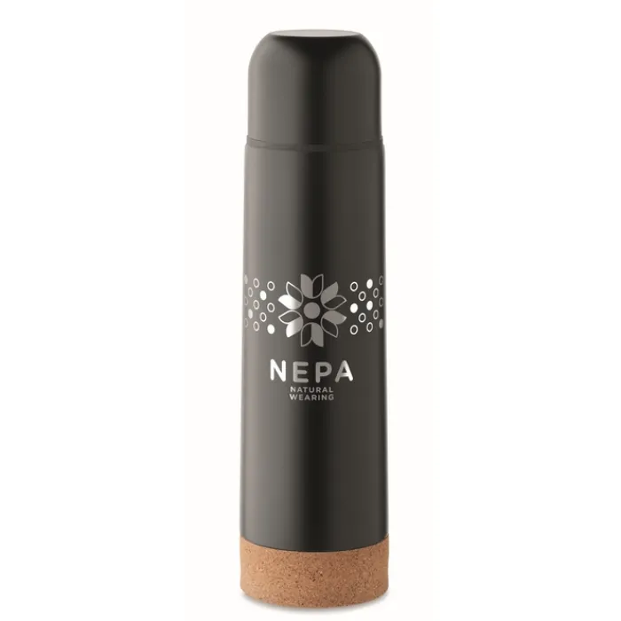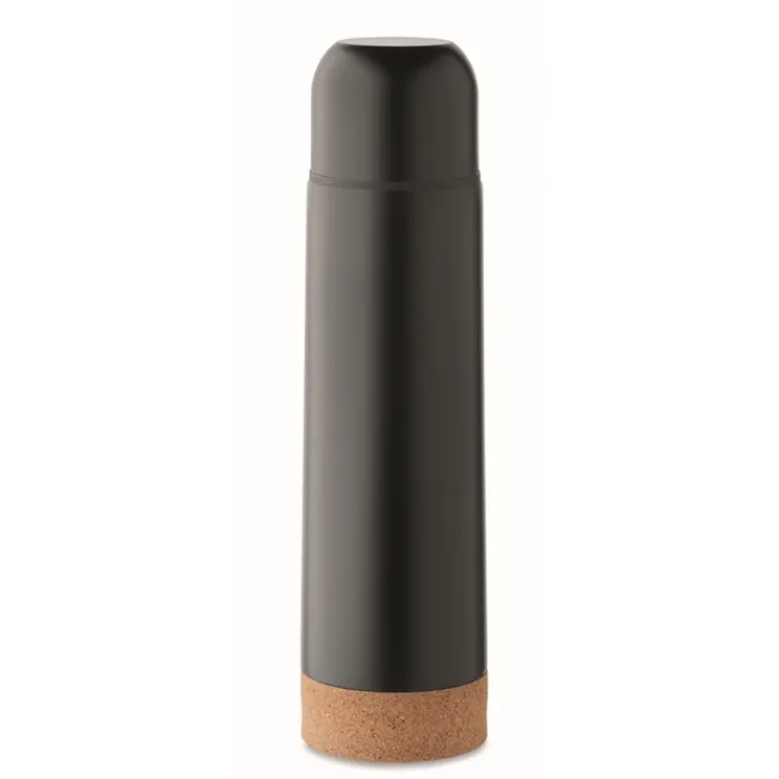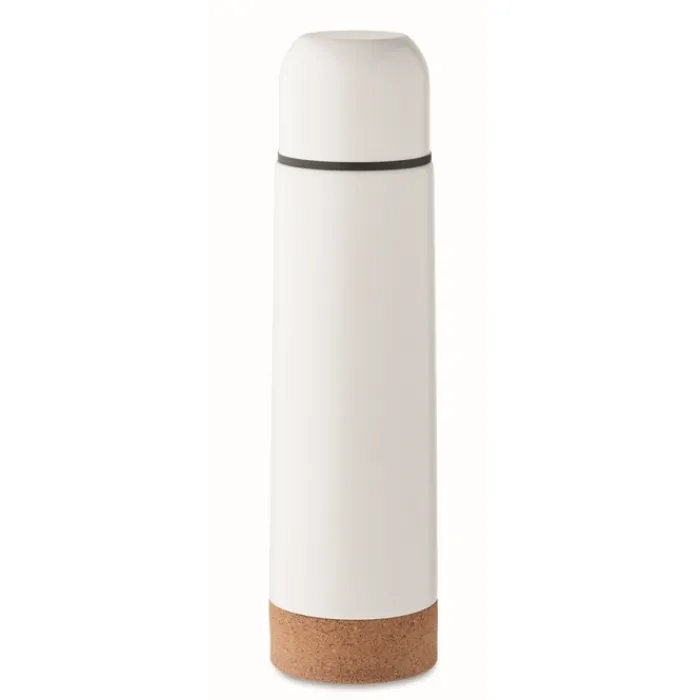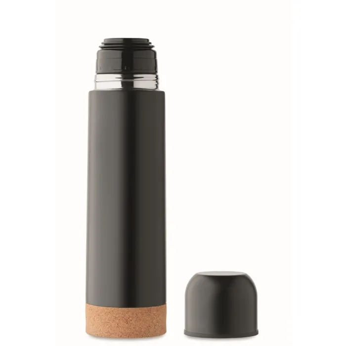 Thermos a doppia parete con isolamento sottovuoto in acciaio inossidabile riciclato con base in sughero. Tappo antifuga. Capacità: 500 ml.