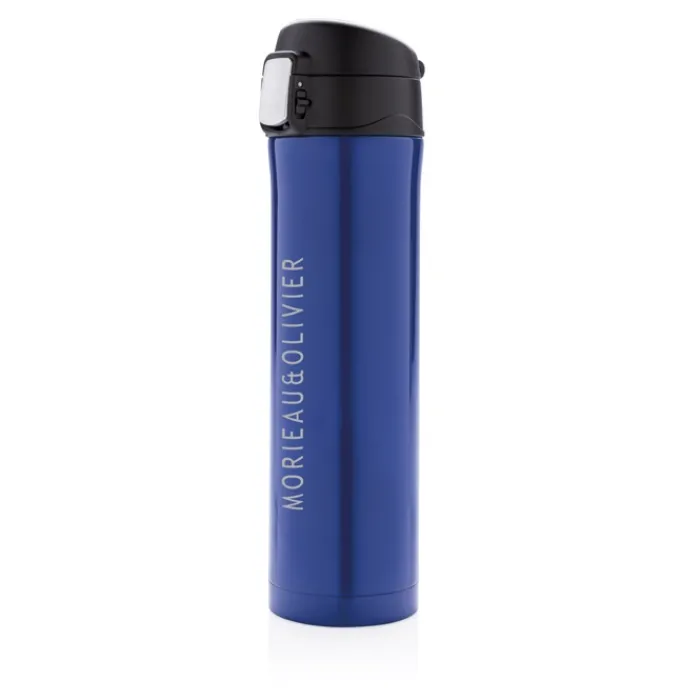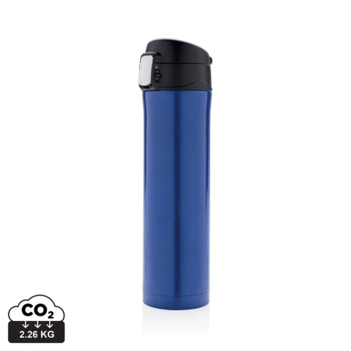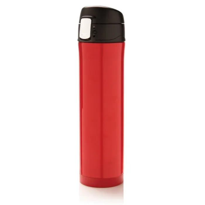 Questo fantastico thermos isolato a vuoto in acciaio inossidabile a doppia parete mantiene la bevanda calda fino a 5 ore o fresca fino a 15 ore circa. Il tappo è chiudibile con sicura e quindi evita qualsiasi rischio di perdite o fuoriuscite. Il coperchio è facile da tenere pulito per un’igiene ottimale ed è lavabile in lavastoviglie. Il design unico del thermos vi consente di bere comodamente e in sicurezza con una sola mano. E’ adatto per essere collocata in qualsiasi porta bibite per auto. Realizzato con materiali riciclati certificati RCS (Recycled Claim Standard). La certificazione RCS garantisce una filiera completamente certificata dei materiali riciclati. Contenuto totale riciclato: 76% in base al peso totale dell’articolo. Senza BPA. Capacità 450 ml. Confezionato in scatola certificata FSC®.