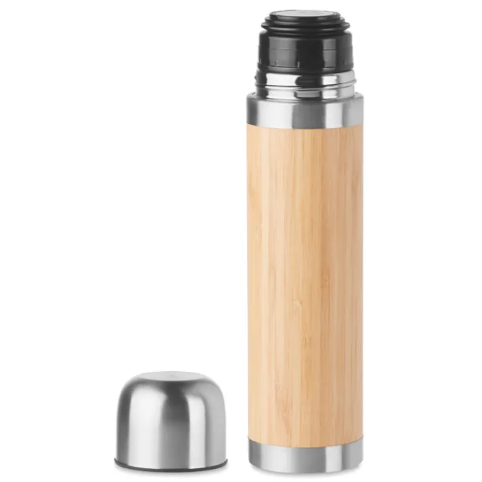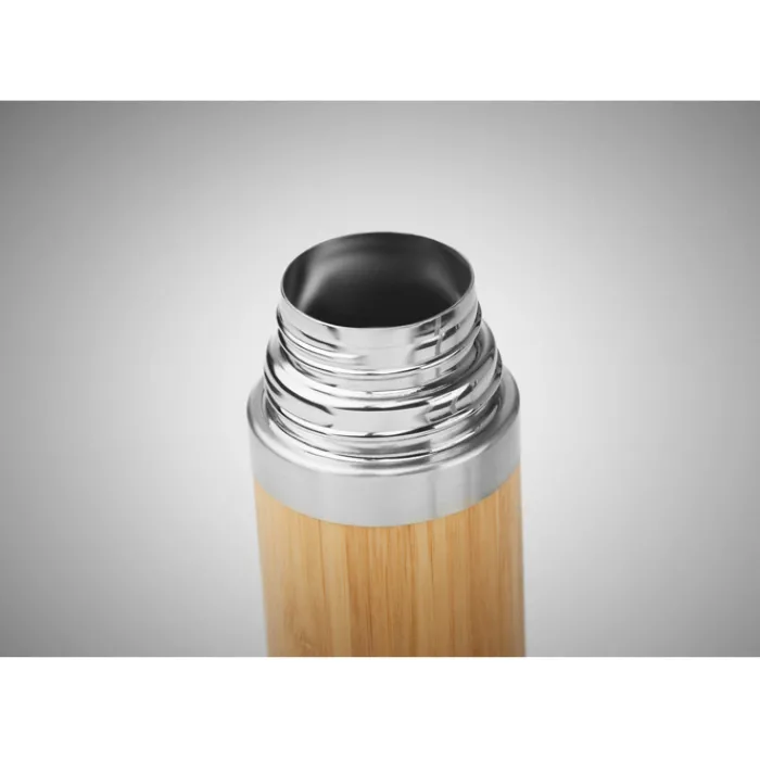 Thermos doppio strato in acciaio inossidabile con rivestimento in bamboo. Capacità 400ml. Il bamboo è un materiale naturale quindi il colore potrebbe variare da un articolo all’altro.
