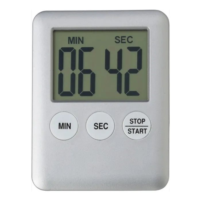 Timer magnetico in ABS. Funziona con una batteria LR1130, che viene inclusa.